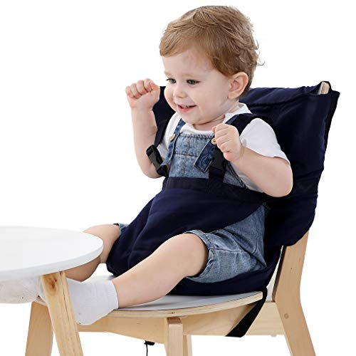 Vine Easy Seat bärbar resa barnstol | justerbar, säkerhet, tvättbar | barnstol sätesskydd | bekväm tyg resa barnstol passar i din handväska (mörkblå)