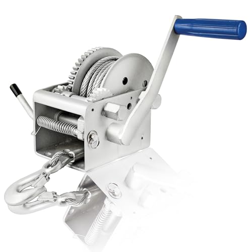 Husar Winch Manuell Vinsch På 4500 lbs | 2040 kg Med 7,5 Meter Stålrep, Handvinsch Med Krok,Tillverkad Av Rostfritt Stål, Spärrbroms Enkelverkande, För båtar, släpvagnar, Industri