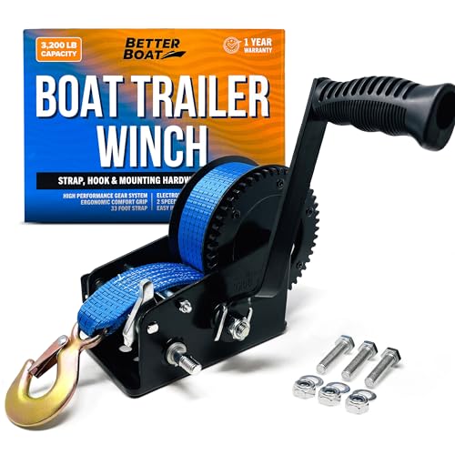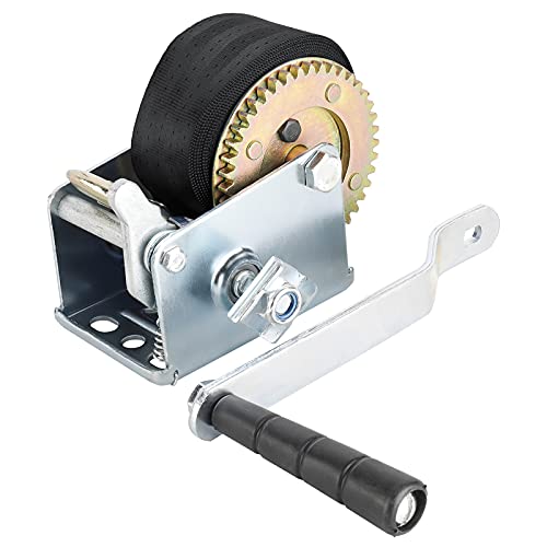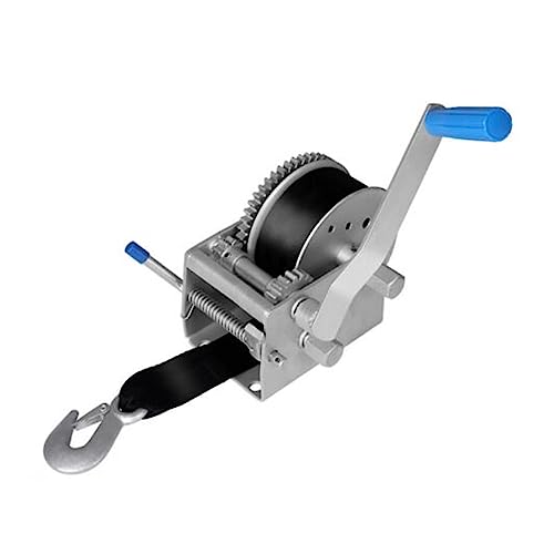 SPARKWHIZ Båtsläp, vinsch handvinsch 1 587 kg slitstark krok med 10 m polyesterrem handvevvinsch, tvåvägs spärrhake båt vinsch för släpvagn lastbil ATV båt