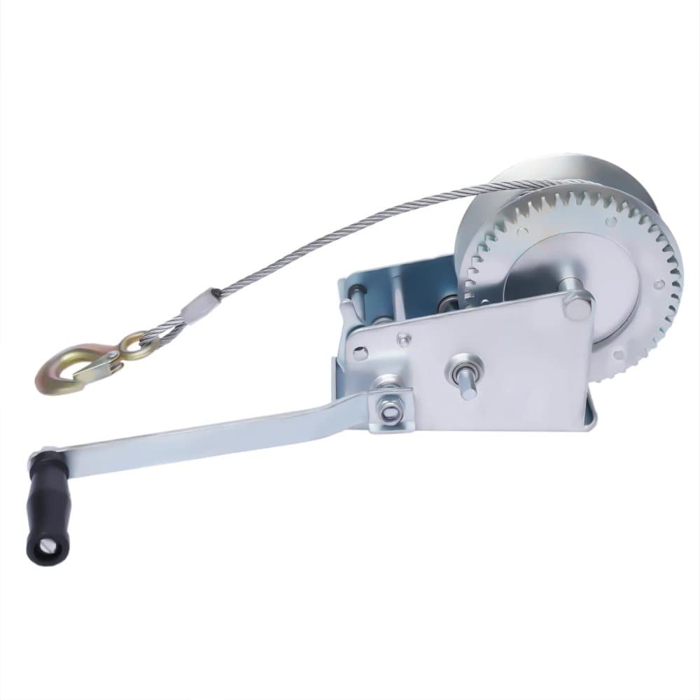 Handvinsch - Manuell vinsch - 1588 kg dragkraft - 10 m stålvajer - Gummihandtag - För båt, trailer, lastbil - Silver