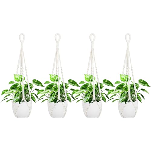 Luckwaii makramé ampel blomkruka hängande, 4 stycken bomullsrep för hängande blomkruka växter upphängning, beige hängande blomkruka för inomhus, utomhus, trädgård, vardagsrum, balkong, dekoration för
