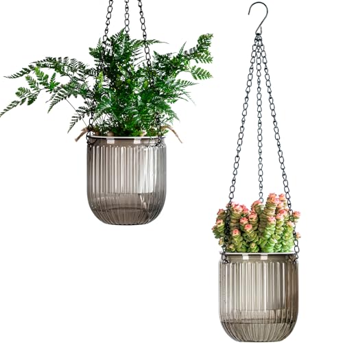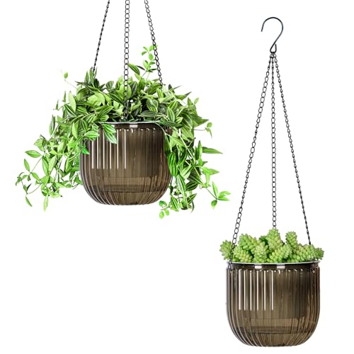 Jeinbuil Hängande blomkrukor, uppsättning med 2 blomamplar, hängande för inomhus- och utomhusbruk, diameter: 21 cm, hängande ampel med kedjor, växtampel