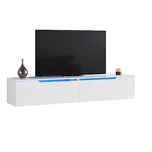 SONNI TV-hylla, lågbord, vit högglans hängande 180 x 35 x 30 cm med LED-belysning (12 färger kan justeras), grepplös design, TV-bräda, TV-bänk, TV-bord, TV-hylla. GTV009W-180
