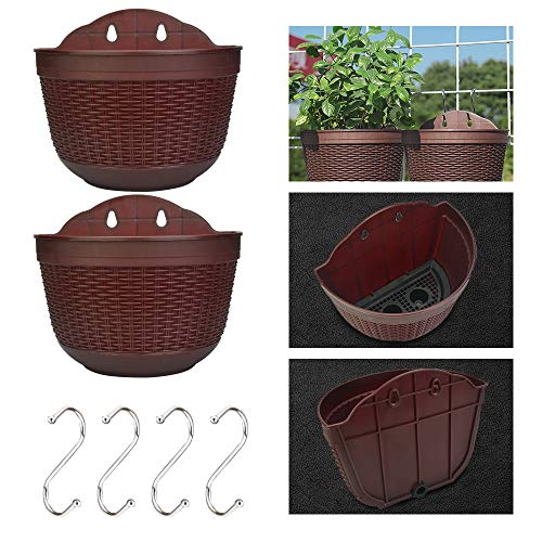 BUZIFU 2 stycken planteringskrukor hängande harts planteringskärl vägghängande blomkruka hängande vägg växtkorgar bruna blomkrukor hängande blomkruka med krok för balkong terrass