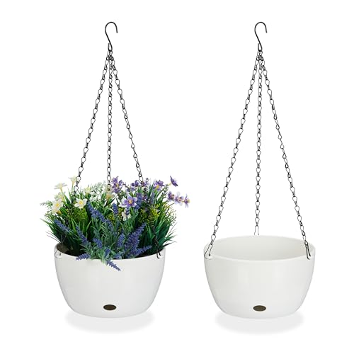 Welherkom Φ22 cm hängande blomkruka, hängande krukor och korgar, kvalitet vit 2-pack hängande krukor och korgar för hemmakontor (vit)