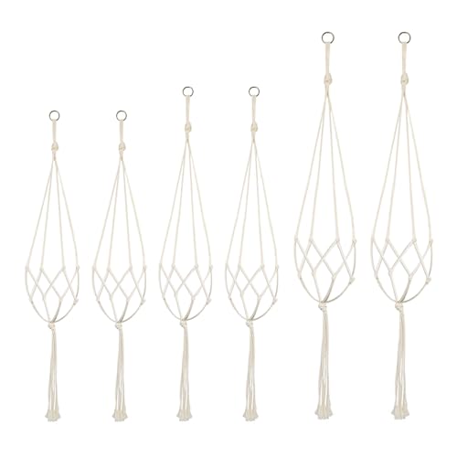COACOM 6 stycken makramé blomampel, vit nätväska, hängande blomkruka, växtstativ, lämplig för tak, trädgård, terrass, fönster