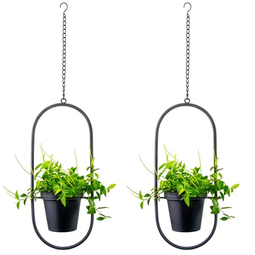 HemePaha Hängande växtväxter i metall, modern växthängare med 12,7 cm blomkrukor, set med 2 svarta ovala växthållare, vägg- och takplanterare för inomhusväxter, heminredning