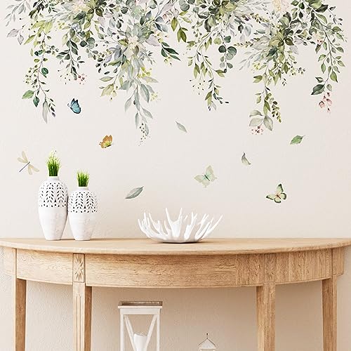Runtoo gröna växtblad väggdekaler hängande vinstockar blomma blad väggklistermärken för sovrum vardagsrum väggkonst dekor