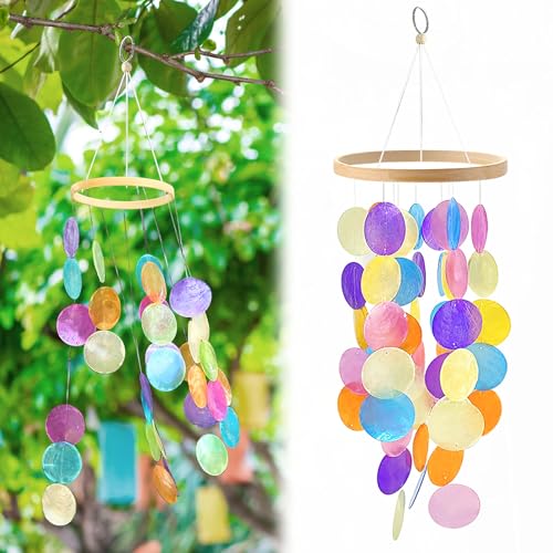 Mussla vindspel, regnbågsmussla vindspel, hängande mussla vindspel, boho dekoration musslor drömfångare kransar, vindklocka snäckor för fönster, terrass, balkong, trädgårdsdekoration (färgglad)