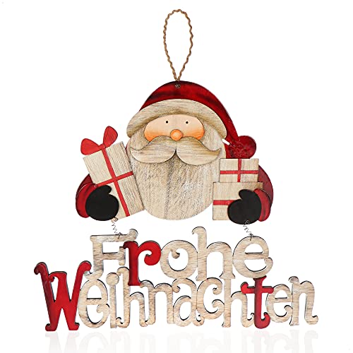 com-four® Hängande dekoration jul - Trähängare med jultomten - Trä dörrskylt jul - Hängare för dörrar, väggar, fönster (Tomten med presenter)