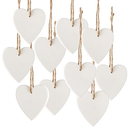 Dekorativa hängsmycken hjärtan 10-talsset: Hjärta att hänga, dekorativa trähängen gåvor, trähjärtan grenar, hjärthänge fönster, hängande dekoration gren, dekorativa hjärtan moderna, vita, hängare