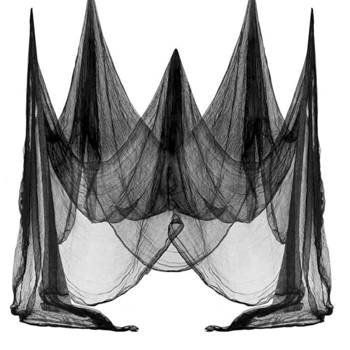 Halloween svart tyg, Halloween läskigt dekorativt tyg 215 x 500 cm, Halloween tyg dekoration svart gasväv, hängande Halloween dekoration, läskigt dekorativ duk för dörr, hall, veranda, fönster