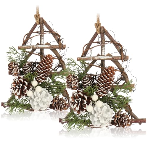 COM-FOUR® 2x hängande gran för juldekoration - Julgranshängare för vinterdesign - handgjord rumsdekoration för dekoration - hängande dekoration för fönster och dörrar (2 stycken - träd)
