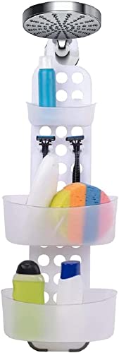 TATAY Multifunktionell Duschhängare | Fuktbeständig | Enkel Montering Utan Borrning | Polypropen | Stapelbar Hängande Duschkorg | Enkel Dränering och Rengöring | 25 x 9 x 28 cm – Vit
