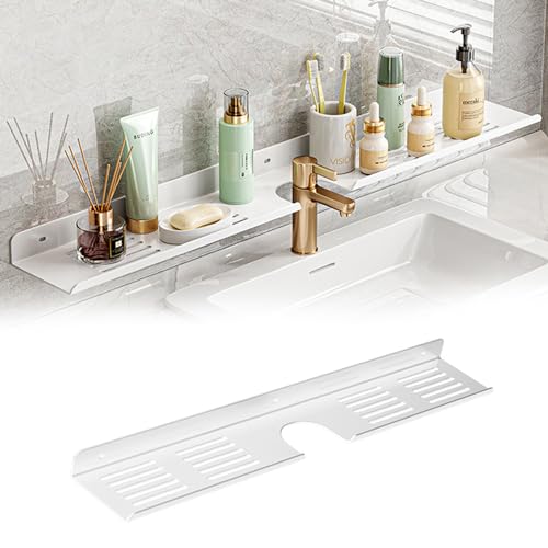 GDWD Diskbänksarrangör, hängande duschhylla utan borrning, kolstål väggmonterad duschhylla, duschkorg organisatör badrumshylla dränering hylla handfat vägghyllor för badrum och kök (vit 40 cm)