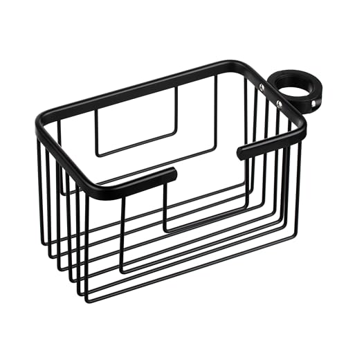 TATAY Duschhylla för Stång i Aluminium | Tål Fukt och Korrosion | Belastning upp till 3 kg | Enkel Montering Utan Borrning | Modern | Hängande Duschkorg med Effektiv Dränering | 12,5x11,5x24cm – Svart