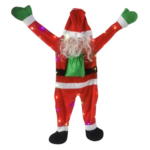 Wedhapy Jul utomhusdekorationer med LED-ljus hängande klättring jultomte mjuk flexibel realistisk jul jultomte för ytterdörr tak eldstad gård jul jultomten hängande jultomte jul utomhus