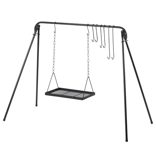 BBQ-Toro Grillgunga, 10 delar grillram med 8 krokar, eldgunga, svänggrill, matlagningsställ, eldstad, höjdjusterbar grillplatta, gunggrill, grillset, hängande stativ