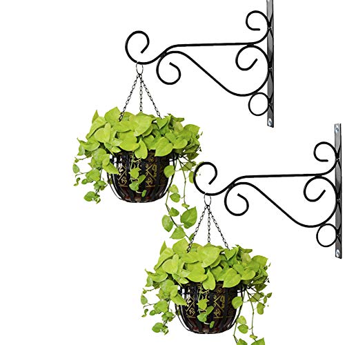 NUPTIO 2 st hängande korgfästen: Utomhus metall trädgårdskrokar för vägghängande växter, staketlyktor, fågelmatare hängare - svart