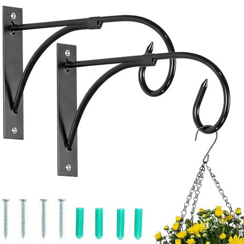 NUPTIO Väggkrok hängande växtfäste, 2 st trädgårdsfästen hängande blomkrukshängare med skruv 29,5 cm för lyktor, fågelmatare, vindspel, planterare, inomhus, utomhus, dekorationskrokar, svart