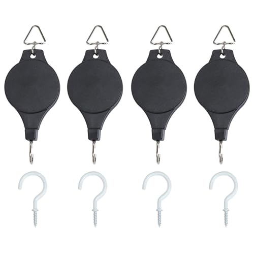 Fippy 4 st hängande korgremskivor, justerbar kraftig växt remskivkrok med 4 st vita takkrokar för att hänga växtkorgar, fågelmatare, växtljus