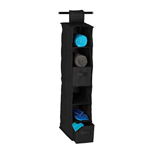 Relaxdays Hänghylla, tyg, hängande förvaring, 6 fack, 2 lådor, för garderob, HBT: ca 82 x 14,5 x 30 cm, svart
