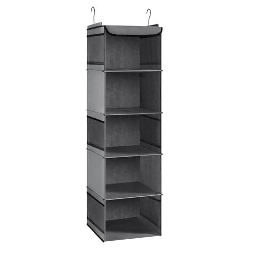 BrilliantJo Hängande förvaring Garderob med 5 Avdelning, tyg Kläder Organiserare förvaringshyllor enhet med 6 Fickor för Kläder - Grå (30 x 30 x 108 cm)