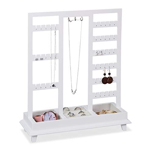 Relaxdays stativ, örhängen i trä för damer, smyckesställ för hängande förvaring, vit, H x B x D: app. 34,5 x 29,5 x 12 cm