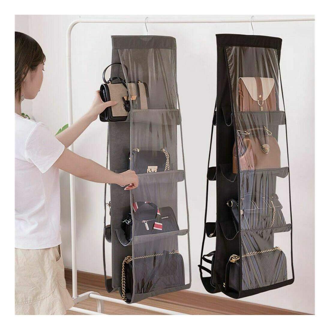 iDesign Aldo hängande handväska och smyckesförvaring, 5 fickor hängande garderob förvaring för handväskor och tillbehör, tillverkad av polypropylen, grå