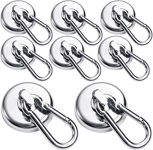 8-pack magnetiska krokar, 100 lbs starka neodymmagnetkrokar kraftiga, magnetiska krokar slitstarka med svängbar karbinhake, magnet med krok hängande för kylskåp, kök, skåp, grill – diameter 32 mm