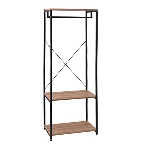 WOLTU Klädställ, hängande hylla, klädstång med skohylla för sovrum, garderobsstativ, metall och trä, svart + ljus ek, ca 60 x 40 167 cm