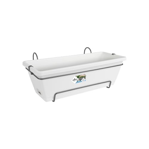 elho Barcelona Allin1 50 balkongplanterare – med fat och hängande hylla – 100% återvunnen plast – Ø 49,5 x H 18,5 cm – vit/vit
