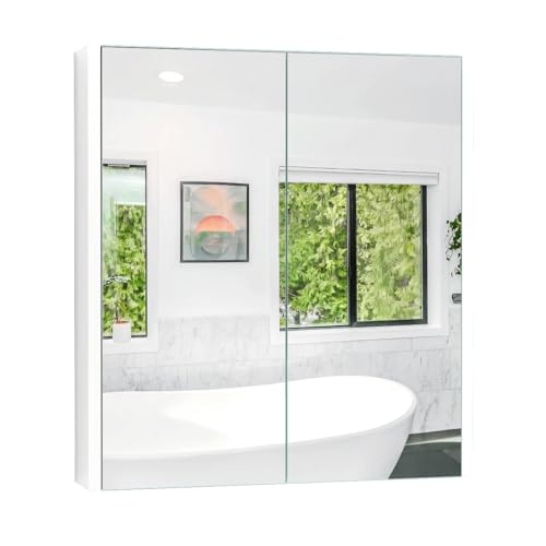 LIFEZEAL Badrumsspegelskåp, väggskåp med 2 dörrar och 2 hyllor, hängande möbelorganisatör för badrum, vardagsrum, sovrum, vit