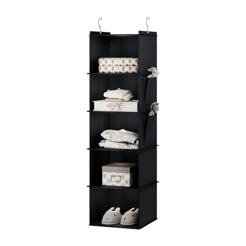 YOUDENOVA Hängande förvaring, 5 hyllor, garderobsorganisatörer och förvaring, vikbara hängande hyllor med sidfickor, garderobsförvaring, organisatör för kläder, svart