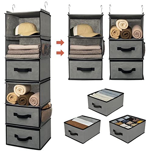 GRANNY SAYS 6-hyllors hängande garderobsförvaringsorganisatör, separerbar till 2-pack 3-hyllors hängande hyllor, hängande lådor för garderob, grå hängande klädförvaringsorganisatör