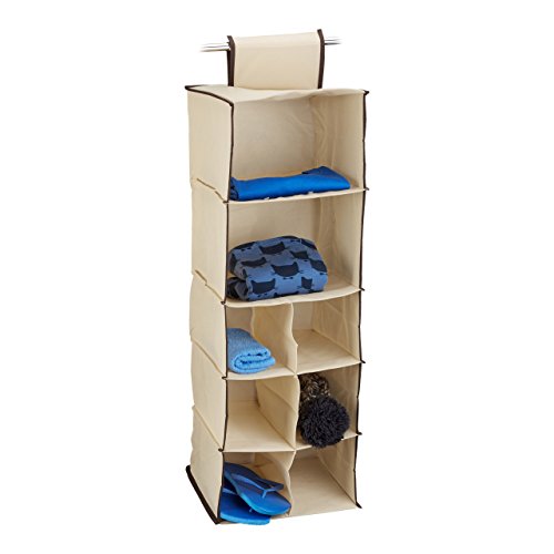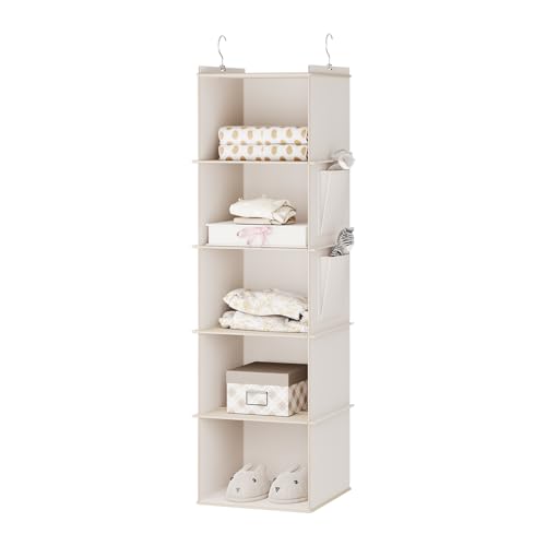 YOUDENOVA Hängande förvaring, 5 hyllor, garderobsorganisatörer och förvaring, vikbara hängande hyllor med sidfickor, garderobsförvaring, organiserare för kläder, beige