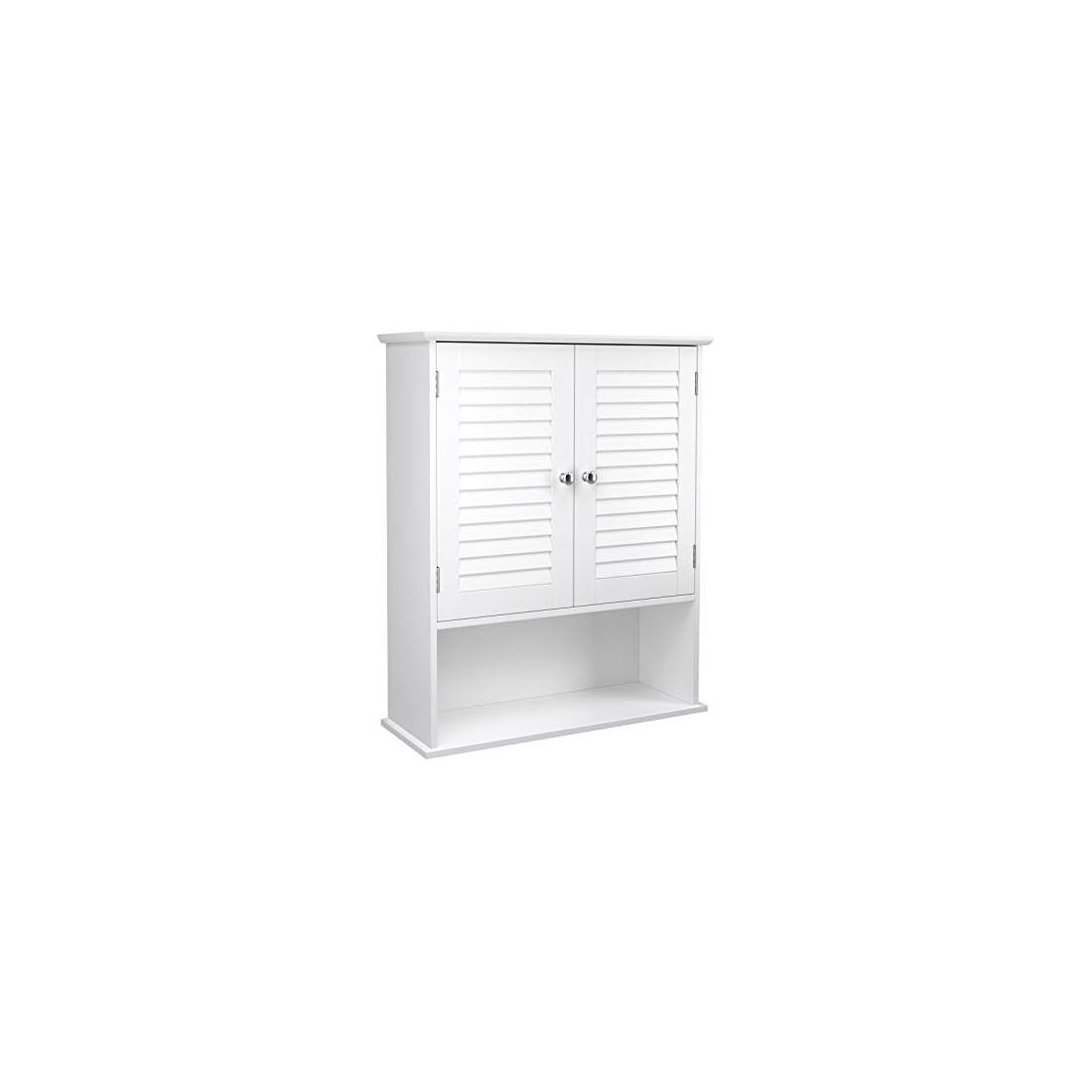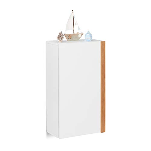 Relaxdays badrumsskåp, väggskåp, hängande hyllor, bambuhandtag och 2 fack, vitt, konstruerat trä, HWD: 58,5 x 32 x 18 cm