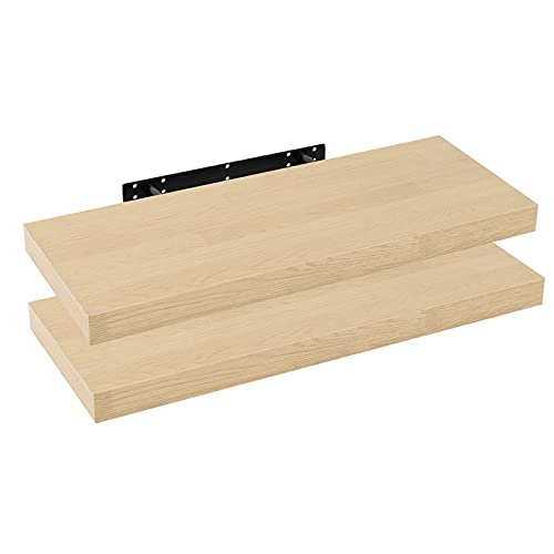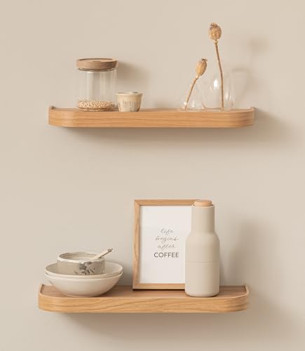 KAZAI.® Vägghylla-Set 'Toke' | 2 Hängande Hyllor i Äkta Träfaner | Svävande Trähylla som Väggdekoration och Förvaring för Badrum, Vardagsrum, Kök, Sovrum och Mer | Ek