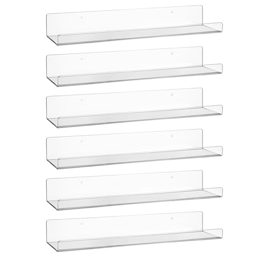 Uppsättning av 6 genomskinliga akrylhyllor för väggmontering, 38 cm väggmonterade hängande hyllor barnbokhylla för sovrum vardagsrum badrum kök