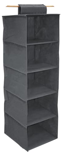 Bigso Box of Sweden Hyllorganiserare för klädstången med 5 stora hyllor – hängande organisatör för garderob med kardborreband – hängande hylla av polyester och kartong