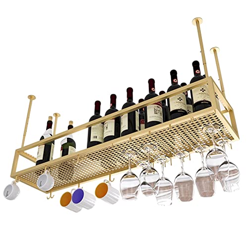 Hängande hyllor för stamvaror, vinställ i tak, metallstativ av glashylla, hyllor för förvaring av järn Justerbar höjd och bredd, guld (Size : 100x25x21cm)