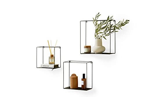 Lifa Living Set Med 3 Väggar, Fyrkantig Flytande Låda, Modern Svart Metall, Förmonterade Dekorativa Hängande Hyllor För Sovrum, Vardagsrum, Badrum, 0
