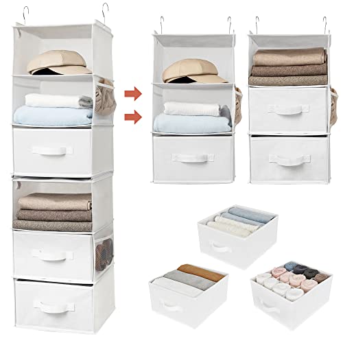 GRANNY SAYS 6-hyllors hängande garderobsförvaringsorganisatör, separerbar till 2-pack 3-hyllors hängande hyllor, hängande lådor för garderob, vit hängande klädförvaringsorganisatör