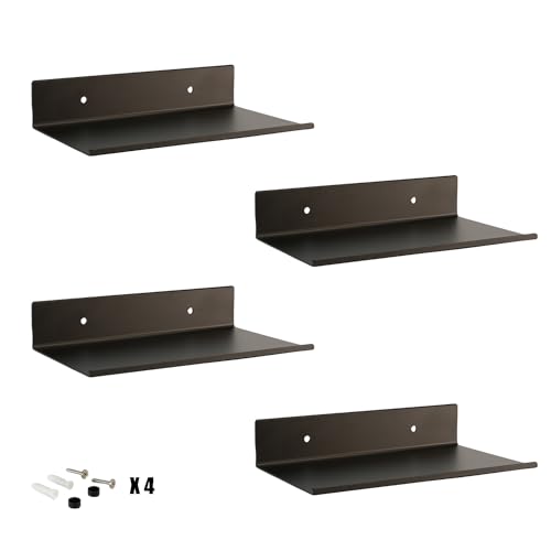 Esmula Paket med 4 badrumshyllor Vägg, 20 cm vägghylla svart metall, metallhylla hängande, flytande hyllor med hål och skruvar för funko popfigurer, samlingar, växter, dekoration