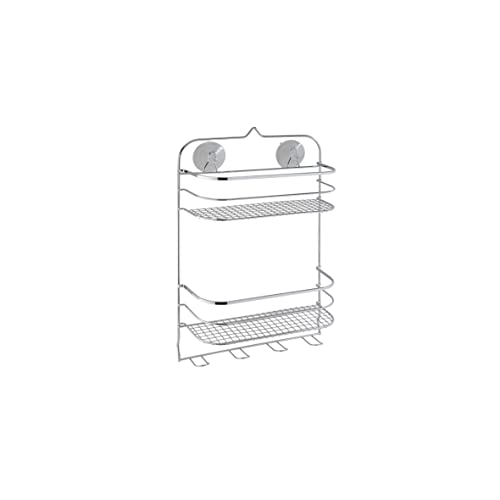 axentia Badrumshylla Cassandra förkromad i silver, hängande hylla med sugkoppar och skruvar, duschhylla med två hyllor och fyra krokar, mått: ca 29,5 x 11 x 46 cm