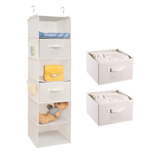 YOUDENOVA Hängande garderobsorganisatör, garderob med 6 hyllor, hängande förvaring med sidofickor, beige