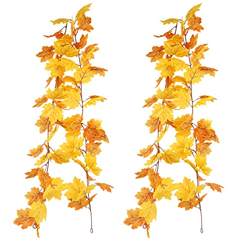 homEdge Konstgjorda lönnlöv girlang, 2 paket 15 m höst hängande klätterväxt girlang för Thanksgiving juldekoration - gul