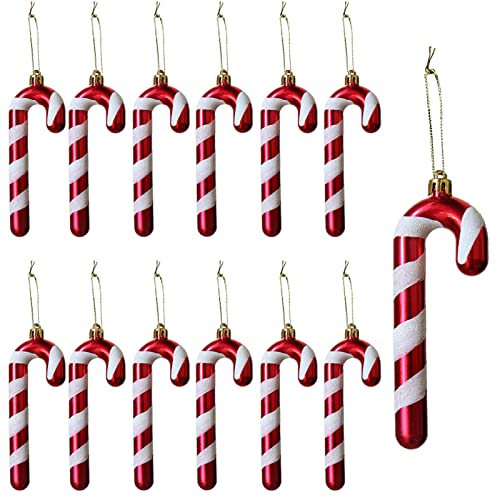 Herzwild Julgransprydnader, polkagrisar för upphängning, juldekoration, hängande polkagrisar, hängande ornament för julgranen, 12 stycken (vit-röda)