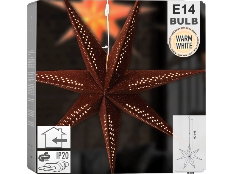 Home Styling Collection Juldekoration Glödande Hängande Stjärna I Brun Velour 60 Cm