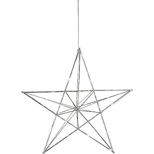 EGLO LED-juldekoration med hängande stjärna, julhängande dekoration med timer, fönsterjulstjärna i metall krom, varmvit ljus